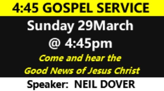 We continue our programme of GOSPEL SERVICES each Sunday Evening @ 4:45pm through 2026.