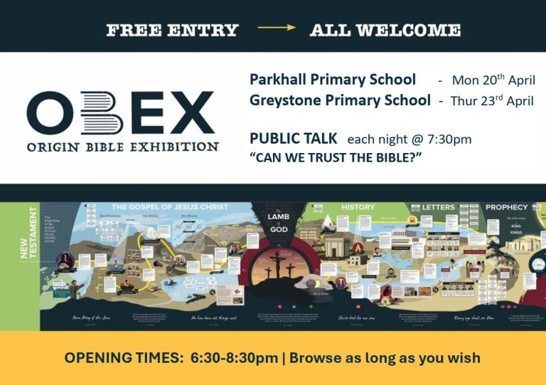 The OBEX exhibition panels give a wonderful panoramic view of the storyline of the Old and New Testaments, plus a brilliant panel on 'How we got the Bible' as a book. In addition there are in-depth displays and models of biblical artifacts and a variety of Bibles.